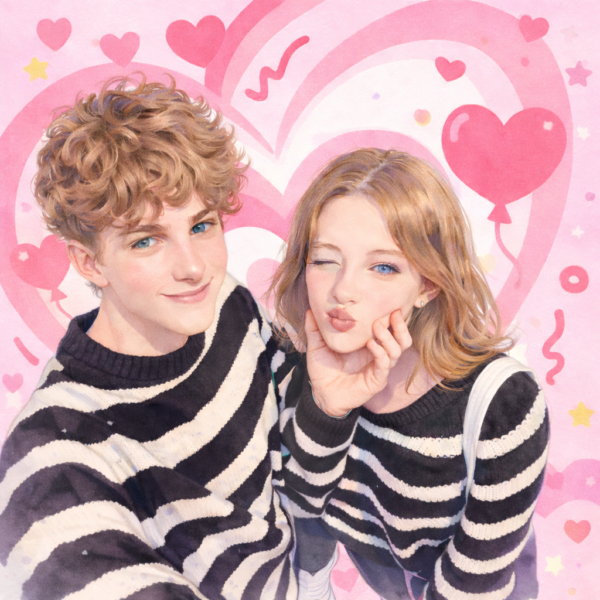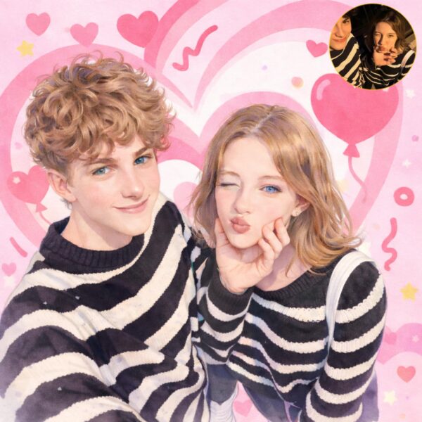 Photos do not need to be taken together — we can combine separate photos into one harmonious watercolor portrait.