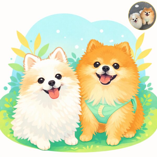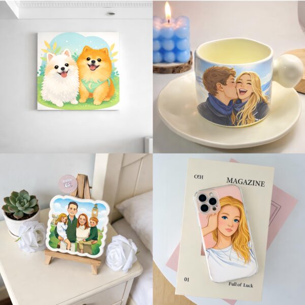 📌 Even if your photos are taken separately, we can combine multiple people or pets into one beautiful illustration.