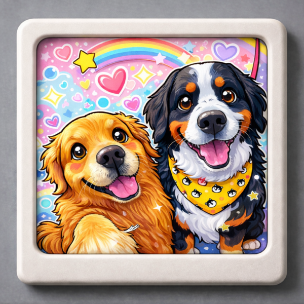 - Bright pastel colors, hearts, sparkles, and dreamy backgrounds